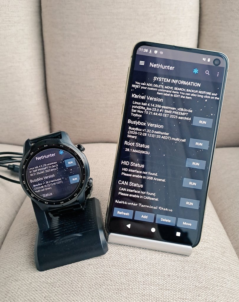 Our recommended device family kicks in the door of Android 16. Made by @V0lk3n, the Samsung Galaxy S10, S10e, S10 Plus, and S10 5G running LineageOS 23 are now added with all the Kali NetHunter features including CAN, as well as internal wireless injection support. Check out the install guide for the S10 as an example. OnePlus Nord now also has Android 16 support by @kimocoder. Last but not least, @k0d14k added support for Xiaomi Mi 9 on Android 15.